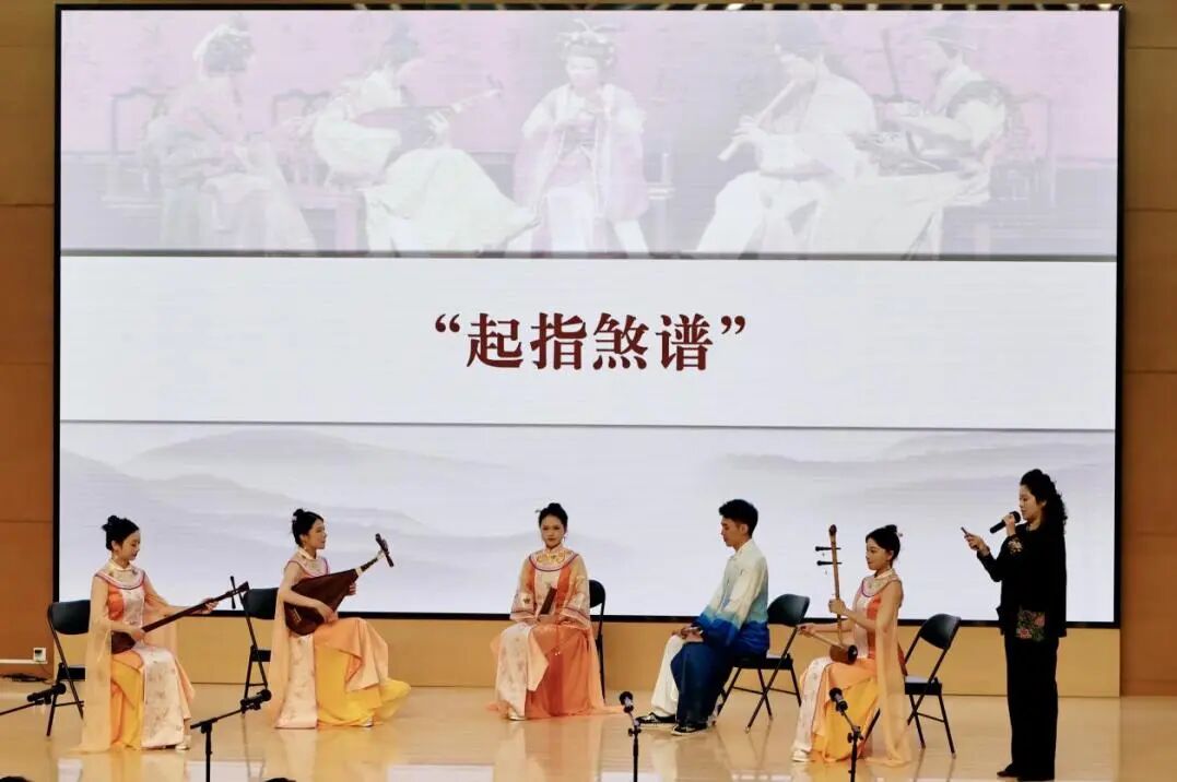 音乐会暨讲演会以“指”启幕,古朴深沉,情致深婉。乐声起处,仿佛推开一扇时光之门,将听众引入千年之前的庭前月下,琵琶轻拢,洞箫幽咽,一唱三叹间,尽显南音作为“汉唐遗响”的典雅气韵。